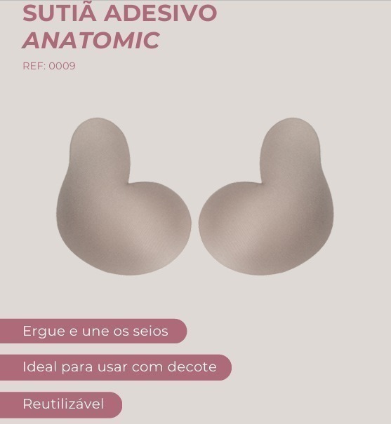 Sua parte interna é revestida com cola de silicone medicinal, que adere suavemente à pele sem causar irritações, oferecendo conforto durante todo o uso. A camada externa com acabamento em tecido traz um visual mais discreto e elegante sob qualquer peça de roupa.